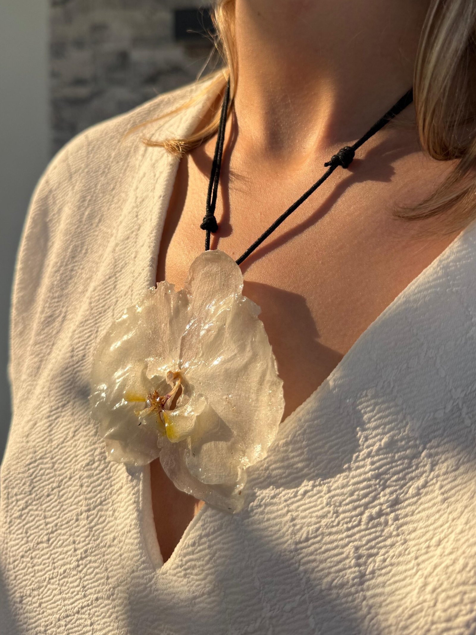 Cada collar es único e irrepetible: solo existe una unidad de cada orquídea encapsulada. Al llevarlo, sabes que no hay otro igual en el mundo. Hecho íntegramente a mano, con la dedicación y el detalle que merece una flor tan especial, este accesorio es tanto un complemento de moda como una pequeña obra de arte natural.
